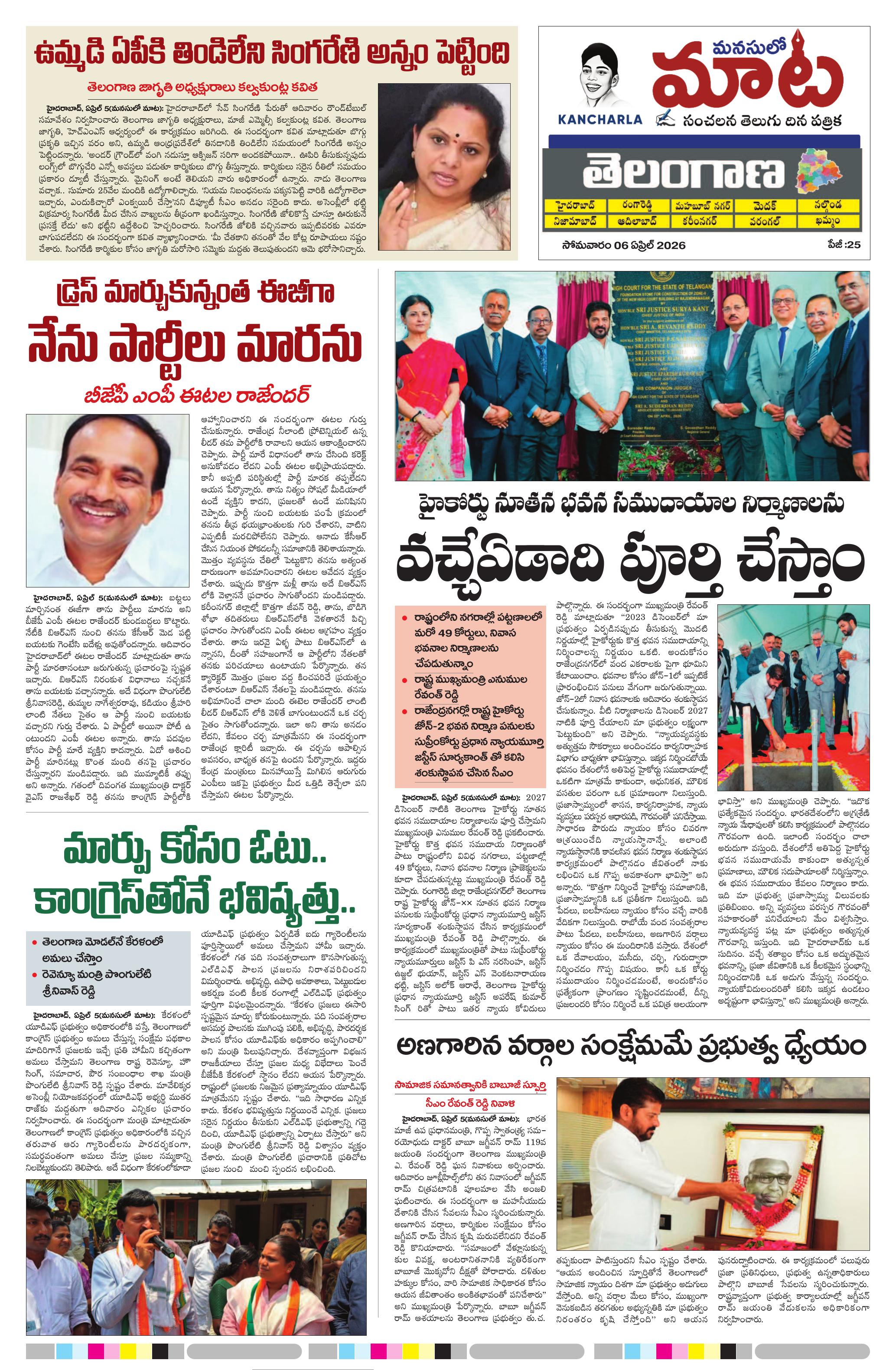 KTV న్యూస్ మరియు KTV ఎంటర్టైన్మెంట్ విజయవంతంగా కొనసాగుతుండగా... త్వరలో మీ కోసం కొత్త ఛానెల్స్ – KTV భక్తి, KTV మ్యూజిక్, KTV హాలివుడ్, KTV బాలీవుడ్, KTV కామెడీ, KTV ఓల్డ్ మూవీస్ మరియు KTV న్యూ మూవీస్! తాజా వార్తలు, వినోదం, సంగీతం, సినిమాలు మరియు ప్రత్యేక కార్యక్రమాలు — అన్నీ ఒక్క KTVలోనే! మనసులో మాట e-paper తో ప్రతి రోజు విశ్వసనీయ వార్తలు చదవండి — మీ స్వరానికి ప్రతిధ్వని మన మనసులో మాట!