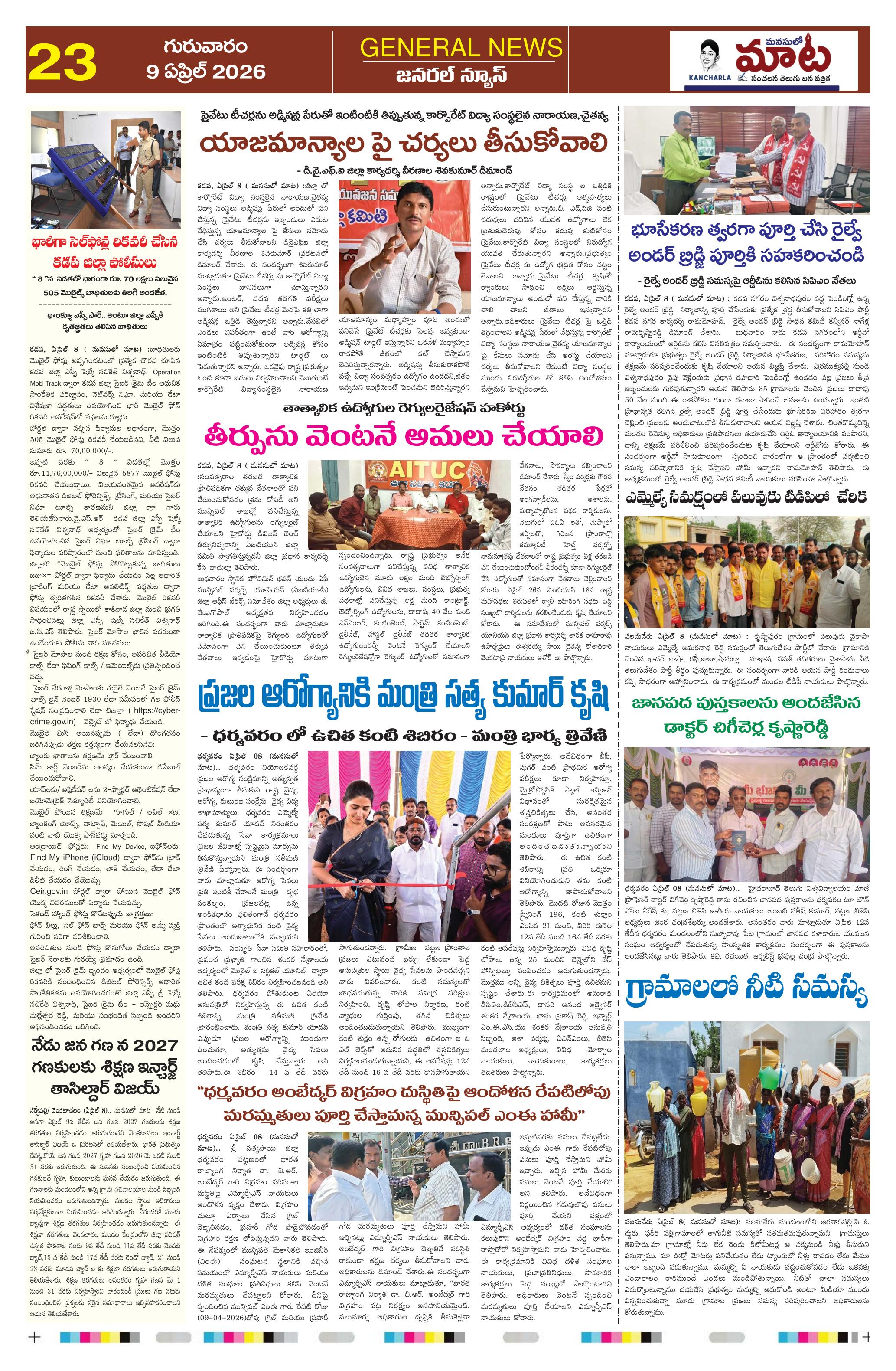 KTV న్యూస్ మరియు KTV ఎంటర్టైన్మెంట్ విజయవంతంగా కొనసాగుతుండగా... త్వరలో మీ కోసం కొత్త ఛానెల్స్ – KTV భక్తి, KTV మ్యూజిక్, KTV హాలివుడ్, KTV బాలీవుడ్, KTV కామెడీ, KTV ఓల్డ్ మూవీస్ మరియు KTV న్యూ మూవీస్! తాజా వార్తలు, వినోదం, సంగీతం, సినిమాలు మరియు ప్రత్యేక కార్యక్రమాలు — అన్నీ ఒక్క KTVలోనే! మనసులో మాట e-paper తో ప్రతి రోజు విశ్వసనీయ వార్తలు చదవండి — మీ స్వరానికి ప్రతిధ్వని మన మనసులో మాట!