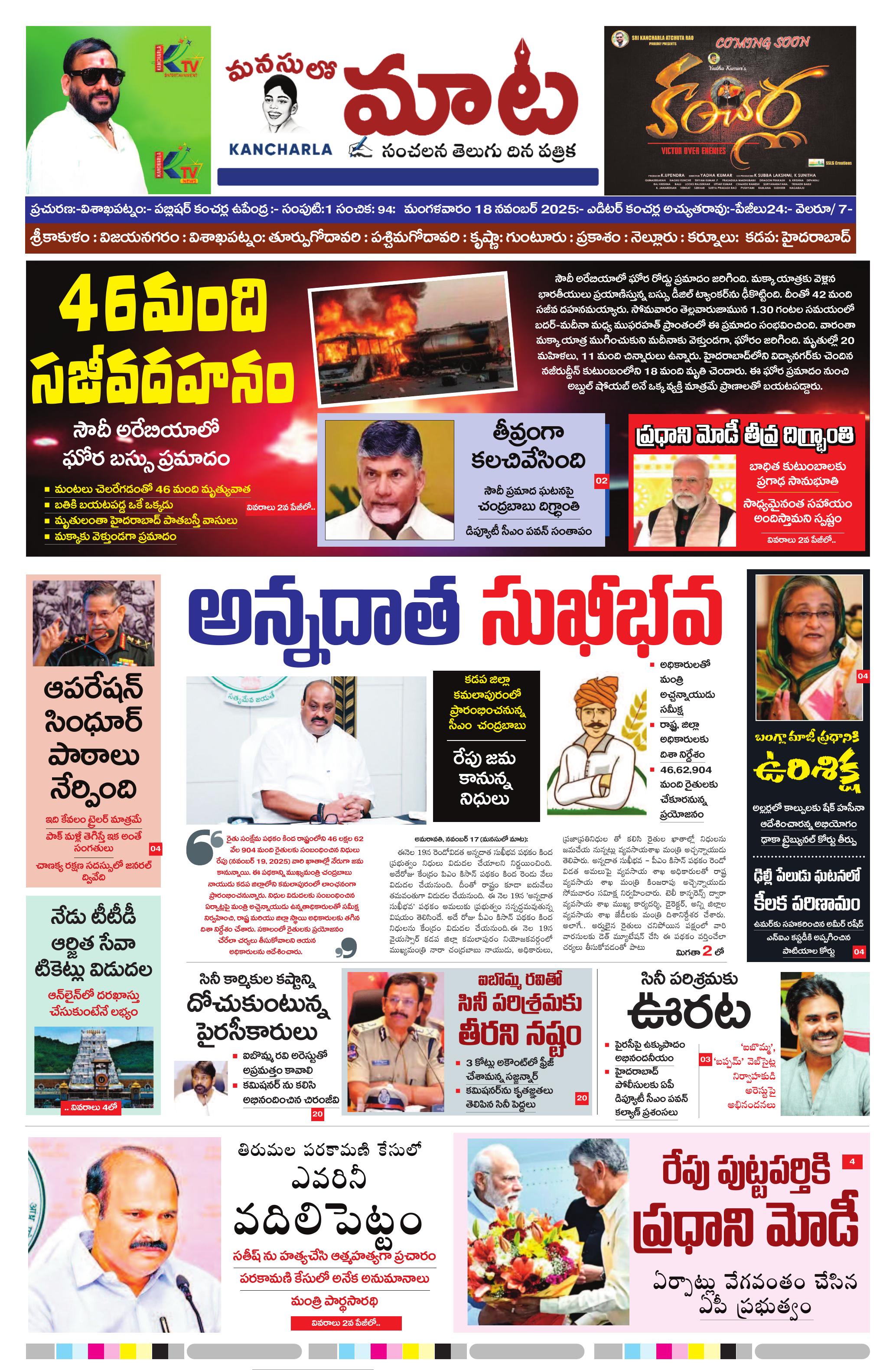 KTV న్యూస్ మరియు KTV ఎంటర్టైన్మెంట్ విజయవంతంగా కొనసాగుతుండగా... త్వరలో మీ కోసం కొత్త ఛానెల్స్ – KTV భక్తి, KTV మ్యూజిక్, KTV హాలివుడ్, KTV బాలీవుడ్, KTV కామెడీ, KTV ఓల్డ్ మూవీస్ మరియు KTV న్యూ మూవీస్! తాజా వార్తలు, వినోదం, సంగీతం, సినిమాలు మరియు ప్రత్యేక కార్యక్రమాలు — అన్నీ ఒక్క KTVలోనే! మనసులో మాట e-paper తో ప్రతి రోజు విశ్వసనీయ వార్తలు చదవండి — మీ స్వరానికి ప్రతిధ్వని మన మనసులో మాట!
